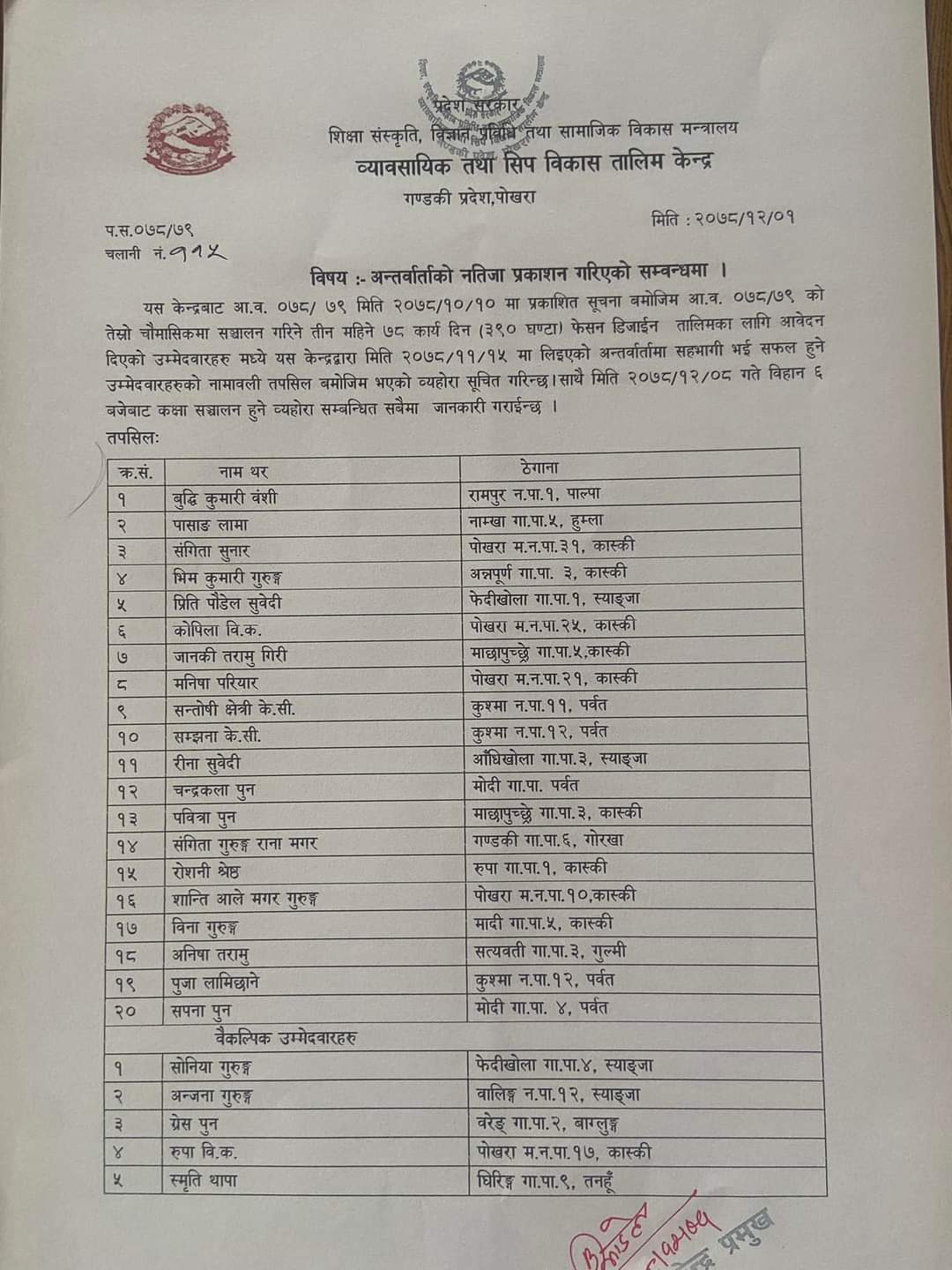 Download: फेसन डिजाईन तालिम नतिजा प्रकाशन