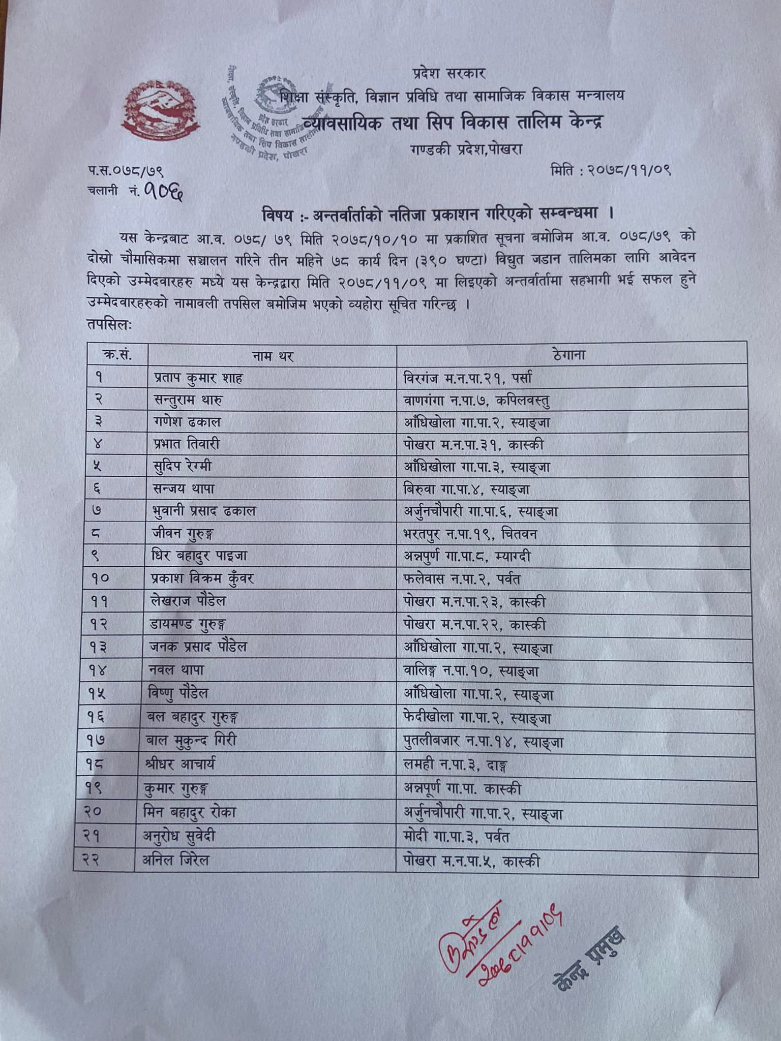 Download: विद्युत जडान नतिजा प्रकाशन