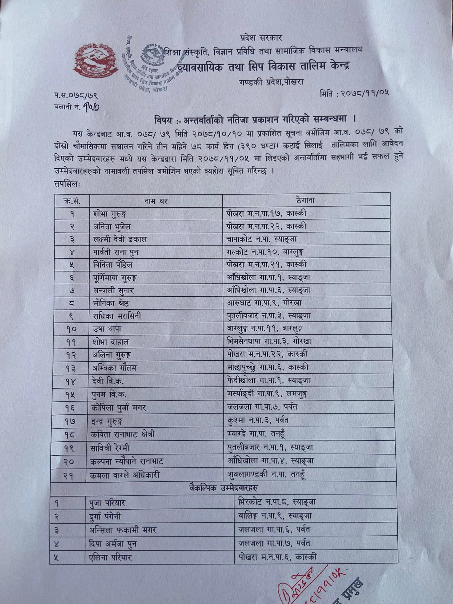 Download: कटाई सिलाई नतिजा प्रकाशन